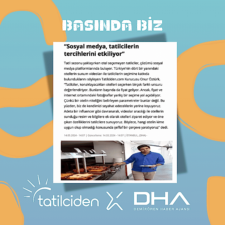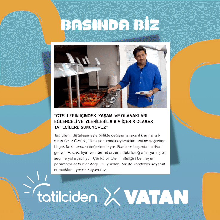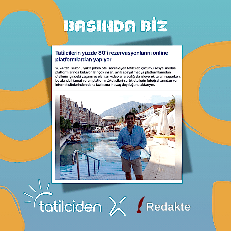 Tatilciden’in tatil planlama sürecinde sosyal medyanın rolü üzerine Vatan Gazetesi’nde yayımlanan özel haberimizle karşınızdayız! Sosyal medyanın otel seçiminizde nasıl büyük bir etkisi olduğunu, tatilcilerin konaklama tercihlerinde nelere dikkat ettiğini ve bu yeni trendlerin neler olduğunu öğrenmek için buraya tıklayın: https://www.gazetevatan.com/gundem/sosyal-medya-kullanimi-tatil-tercihlerini-etkiliyor-2145795