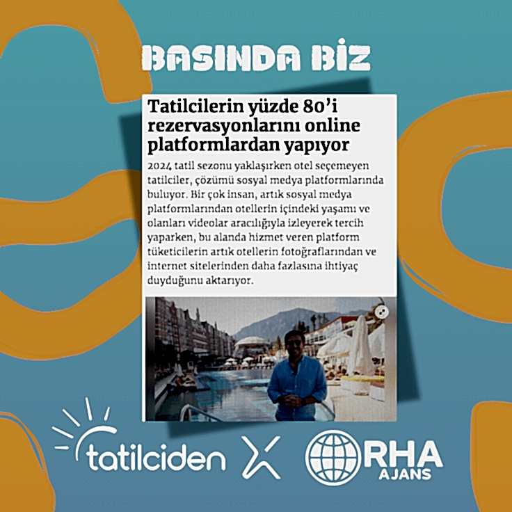 Sosyal medya, tatil tercihlerinde nasıl bu kadar etkili oldu? Tatilciden’in, tatilcilerin %80’inin rezervasyonlarını online platformlar üzerinden yapma eğilimini konu alan RHA Ajans’ta yayımlanan haberini keşfetmek için buraya tıklayarak otel seçim süreçlerini ve sosyal medyanın rolünü derinlemesine inceleyen bu özel haberi kaçırmayın: https://rhaajans.com/haber/20172352/tatilcilerin-yuzde-80i-rezervasyonlarini-online-platformlardan-yapiyor